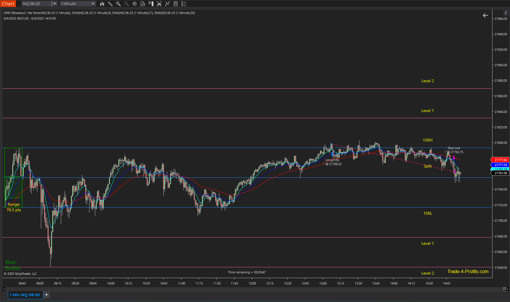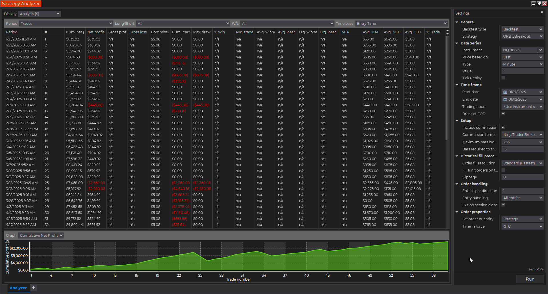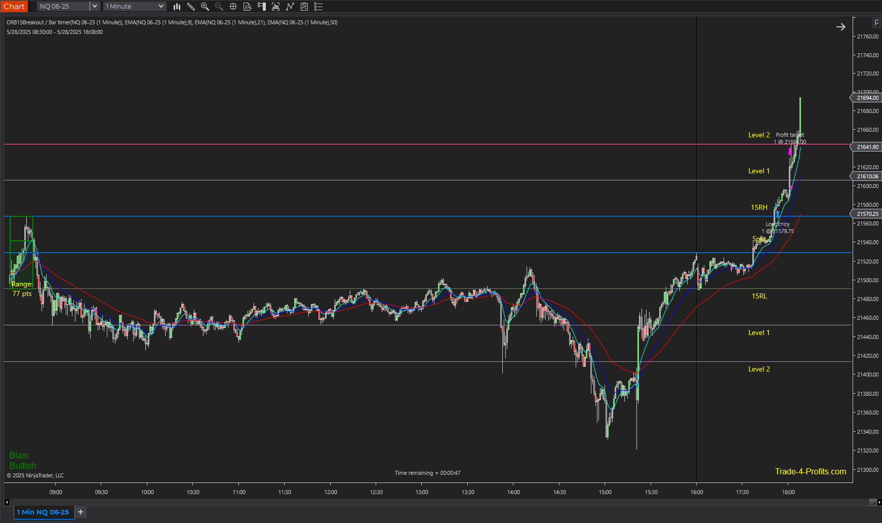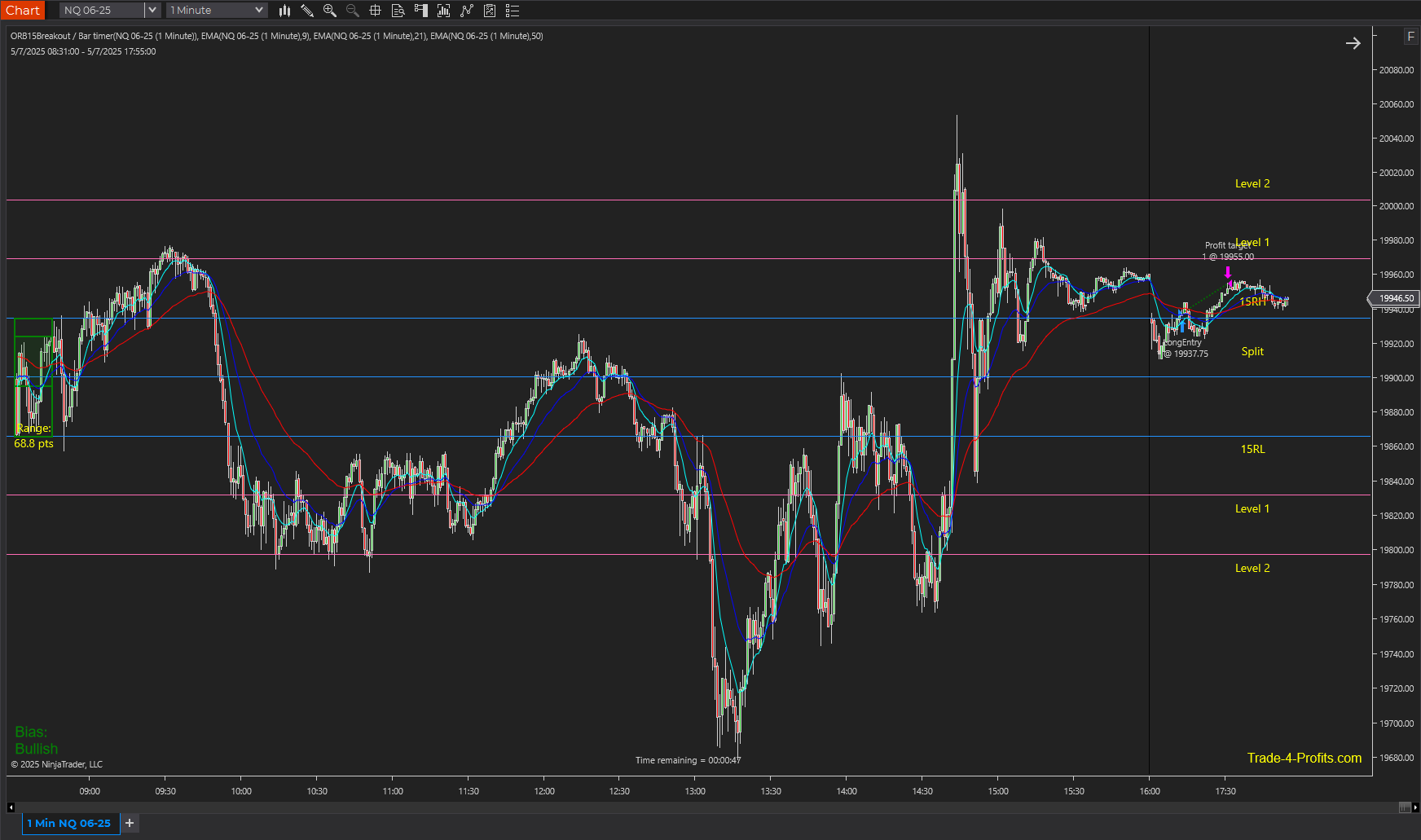 Dominate the first 15 minutes of the trading day with ORB15Breakout, a powerful algorithmic trading bot designed for Nasdaq futures (NQ & MNQ). This fully automated system is built around a proven Opening Range Breakout (ORB) model — with multi-timeframe confirmation and ultra-precise execution on the 1-minute chart.
